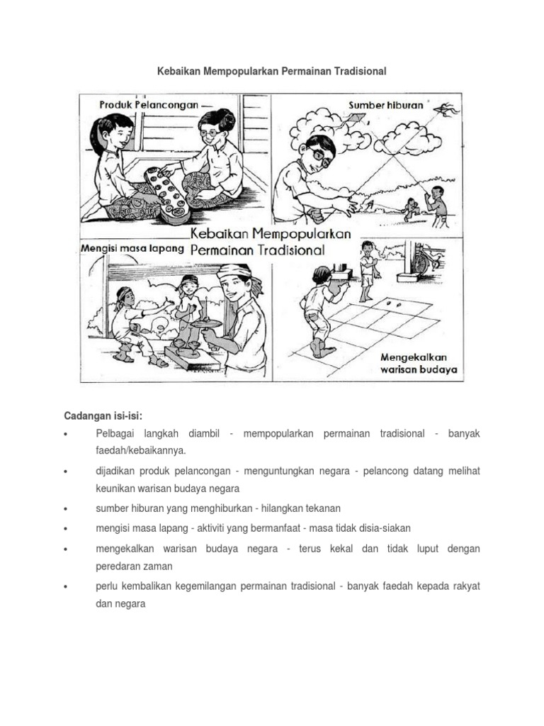 Bahasa melayu pt3 penulisan pt3 ulasan pt3 soalan ulasan pt3 latihan ulasan pt3 ulasan. Salah satu cara untuk mempopularkan Permainan Tradisional ialah menerusi media massa yang dapat menguar-uarkan sesuatu berita dengan. Gambar ini menunjukkan kebaikan mempopularkan permainan tradisional.